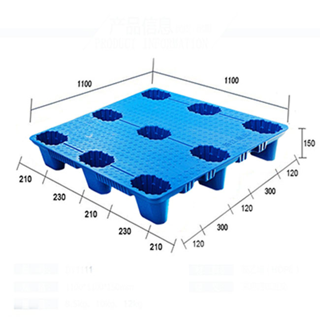 塑料托盘的形制大致可分为5种,首先是:平田字形塑料托盘,双面都是注塑工艺一体成型,托盘上有预留的卡槽和小孔规划,能够直接用配件将两块板合在一起;其次:双面塑料托盘,双面都是焊接型结构,能够依据需要来选择叉车是二面进叉仍是四面进叉,放在货架上能够适应两种不同的货架跨度,不必的时分则能够叠放节约空间;第三种九脚型塑料托盘,平板结构,四面都能够进叉,托盘外表光滑,易于清洁,底部可增设强筋活在内部放钢管来使承重更强;第四种:川字型塑料托盘,底部是一个川字,既合适机械叉车也合适手动的,能够依据需要增设钢管;第五种:网格双面性塑料托盘,托盘底部结果双面都是网格,一体成型,合适调配货架一起运用。